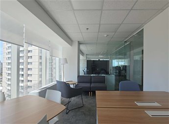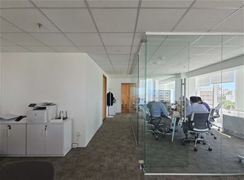- Despacho privado de buenas dimensiones (actualmente con doble escritorio, mesa de reuniones circular, y sofá).
