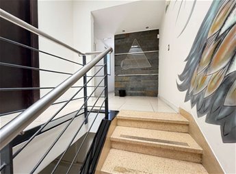 Escalera cómoda hacia Planta Alta y caja de ascensor.